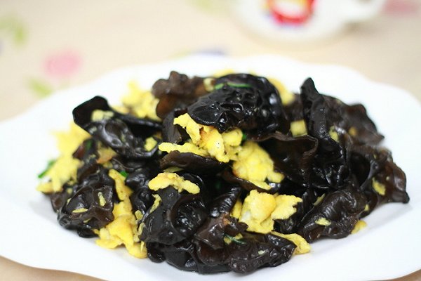 做法:黑木耳用冷水泡发,漂洗干净摘去老根,鸡蛋打入碗中打匀,热油锅倒入蛋液,炒至七八成熟盛出备用,锅中放少许油,放入木耳慢慢翻炒,待听到黑木耳发出均匀的噼里啪啦响声时,加入炒熟的鸡蛋和盐,快速翻炒均匀出锅,装好盘后撒上香葱。