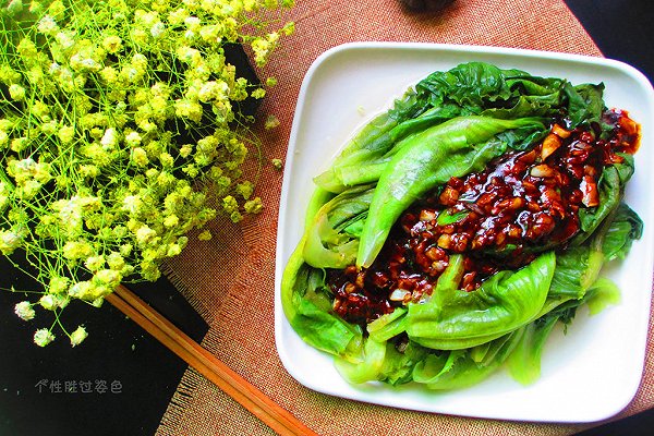 做法:生菜洗净掰开,锅内加入清水烧开,把生菜放入锅内焯烫至熟后,捞起装盘,起锅倒入食用油,下入蒜末煸出香味,倒入2勺无糖酱油,再加2勺清水煮沸,最后把汁浇在生菜上即可食用。