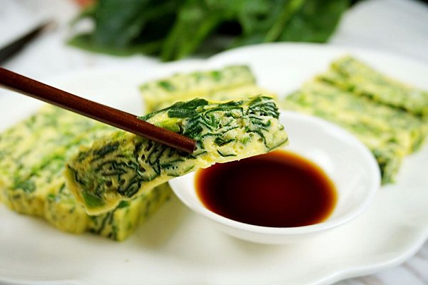 做法:鸡蛋3个,加1小勺盐打匀,菠菜洗净过沸水焯一下,去掉草酸,菠菜捞出来,攥一下去掉水分,切碎丁倒入鸡蛋液中搅拌均匀,放入蒸锅, 开水上汽后蒸10分钟即可,因为菠菜本身没什么味道,蒸好后加入1小勺生抽和香油,蒜泥,很好吃。
