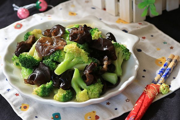 做法:木耳泡发好洗净去根,撕小朵。西蓝花掰成小朵,洗净,锅中入水,加少许盐、油,烧开后下西蓝花焯熟,盛出放凉开水中浸泡,再放入木耳焯熟,盛出放凉开水中浸泡,沥干水分后将西蓝花,木耳加入蒜末,盐拌匀即可,根据口味可加少许食醋。