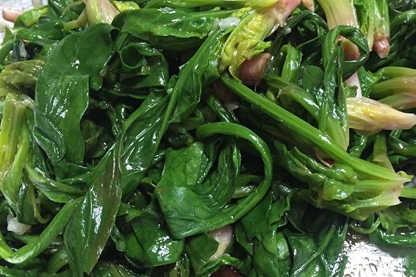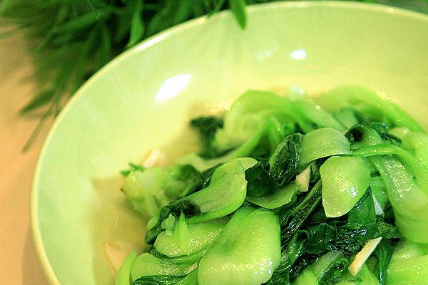 做法:起锅油烧热,加入洗干净沥水的鸡毛菜翻炒,鸡毛菜炒软之后加入大蒜碎以及盐调味翻炒几下出锅。