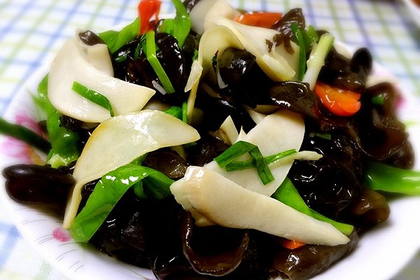 做法:将杏鲍菇、大蒜、香葱、香菜切好备用,黑木耳泡发洗好去根,热锅冷油,先放入大蒜和杏鲍菇一起翻炒,杏鲍菇炒软后加入黑木耳、香菜、香葱下锅翻炒片刻,加入食盐,无糖酱油翻炒均匀即可起锅装盘。